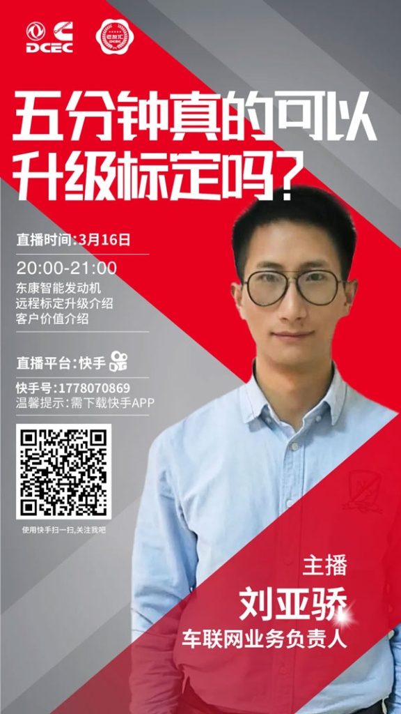 3月16日晚20:00-21:00,东风康明斯车联网业务负责人刘亚骄,为您深入解读东康智能发动机、介绍远程标定升级功能,让您成为智能化时代最“潮”的“老司机”。