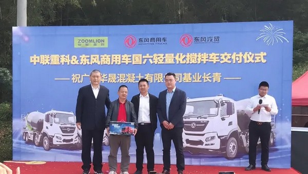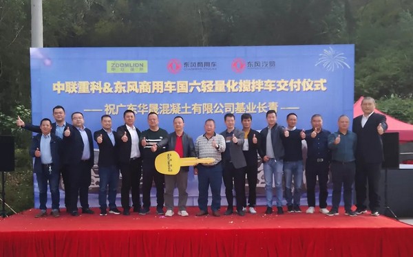 广东华晟混凝土搅拌有限公司考虑到企业发展需要,决定批量新增轻量化国六搅拌车。目前,已签订50辆购买协议,本次首批交付10辆。