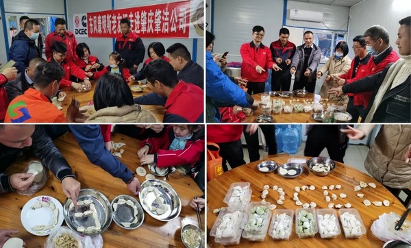 东康用户一家亲,活动现场还特别设置了包饺子比赛活动。现场分成4个小分队,看看哪个队以最快最好的速度用饺子拼出“DCEC”,最后大家都非常完美的完成了任务。活动现场氛围感十足,浓浓的年味伴随着欢声笑语,让大家都提前感受到新年的快乐。
