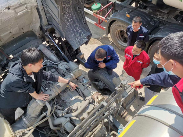 东风康明斯始终将关爱渗透到每一个用户,“老友汇客户关怀万里行活动”本次也来到绿途运输,为帮助该公司更好的使用东风康明斯Z15N动力,东风康明斯特派工作人员对司机进行用车培训,对天然气车的使用注意事项、简单故障解决方案进行详细讲解,并进行现场指导。